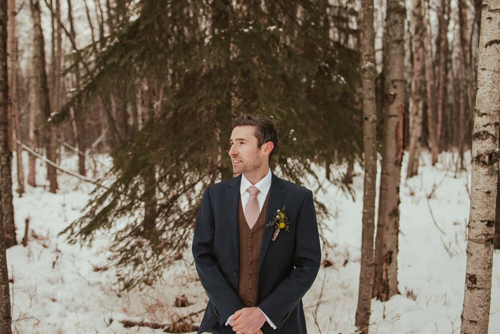 Chilly Winter Elopement in the Woods of Anchorage, Alaska