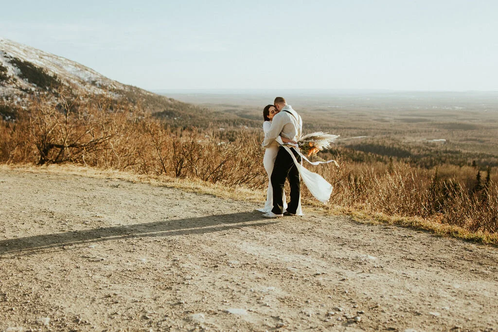 Driving up the Chugach mountains to get to this epic overlook during sunset was worth it! We stayed up until 9pm to catch these amazing sunset views of Anchorage, Alaska. Enjoy these fun elopement styled shoot of Cameron and Jake!